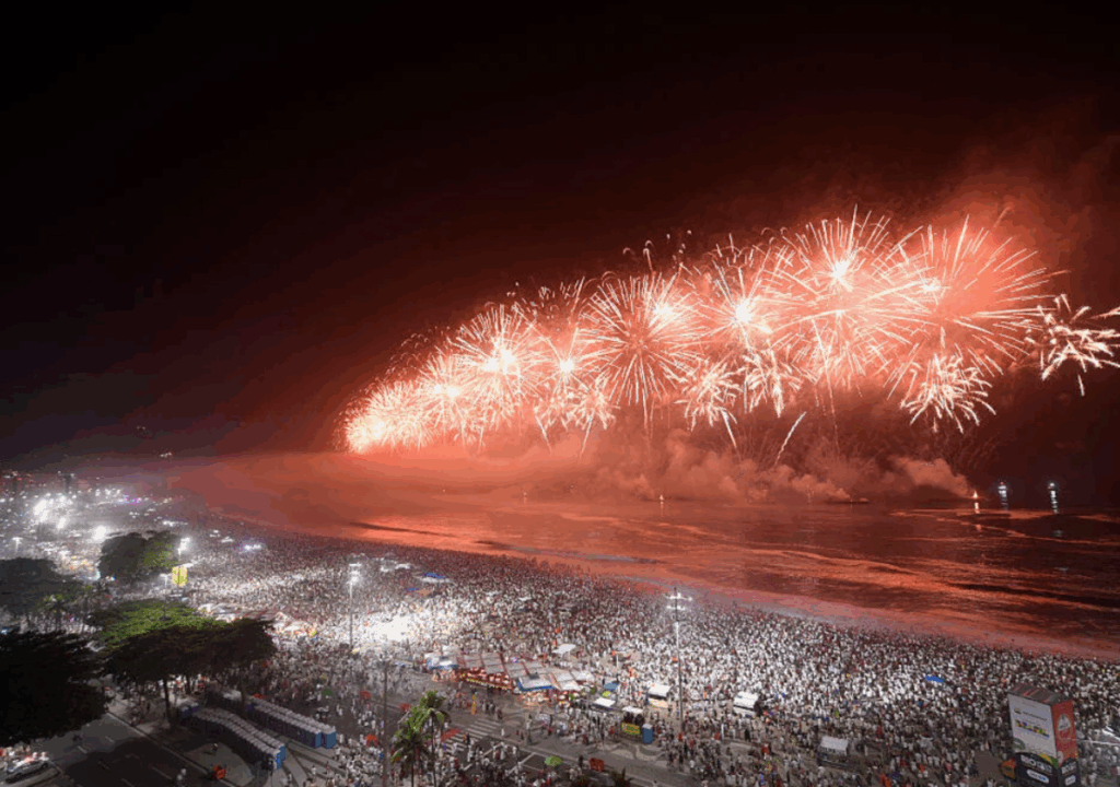 Few celebrations rival Rio’s New Year’s Eve at Copacabana Beach. Millions dressed in white gather for fireworks, music, and offerings to the sea, welcoming 2026 with spiritual symbolism and exuberant energy.